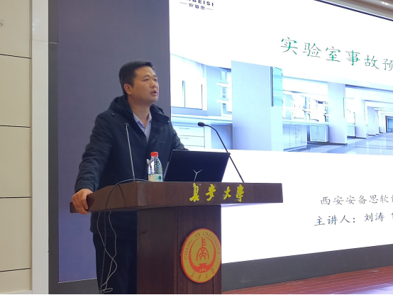 在南校区北院学术交流中心报告厅举办实验室安全事故预防及应急培训会,邀请西安安备思软件有限公司总经理刘涛进行实验安全应急处置讲座。